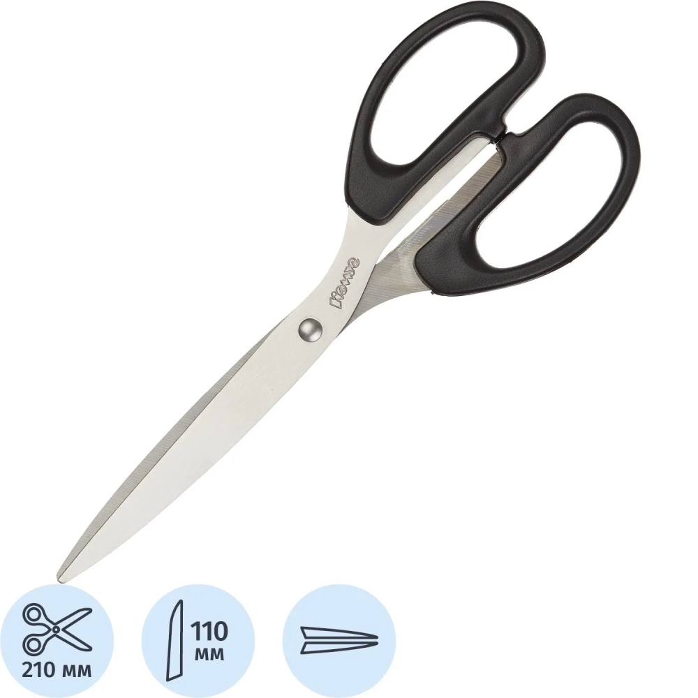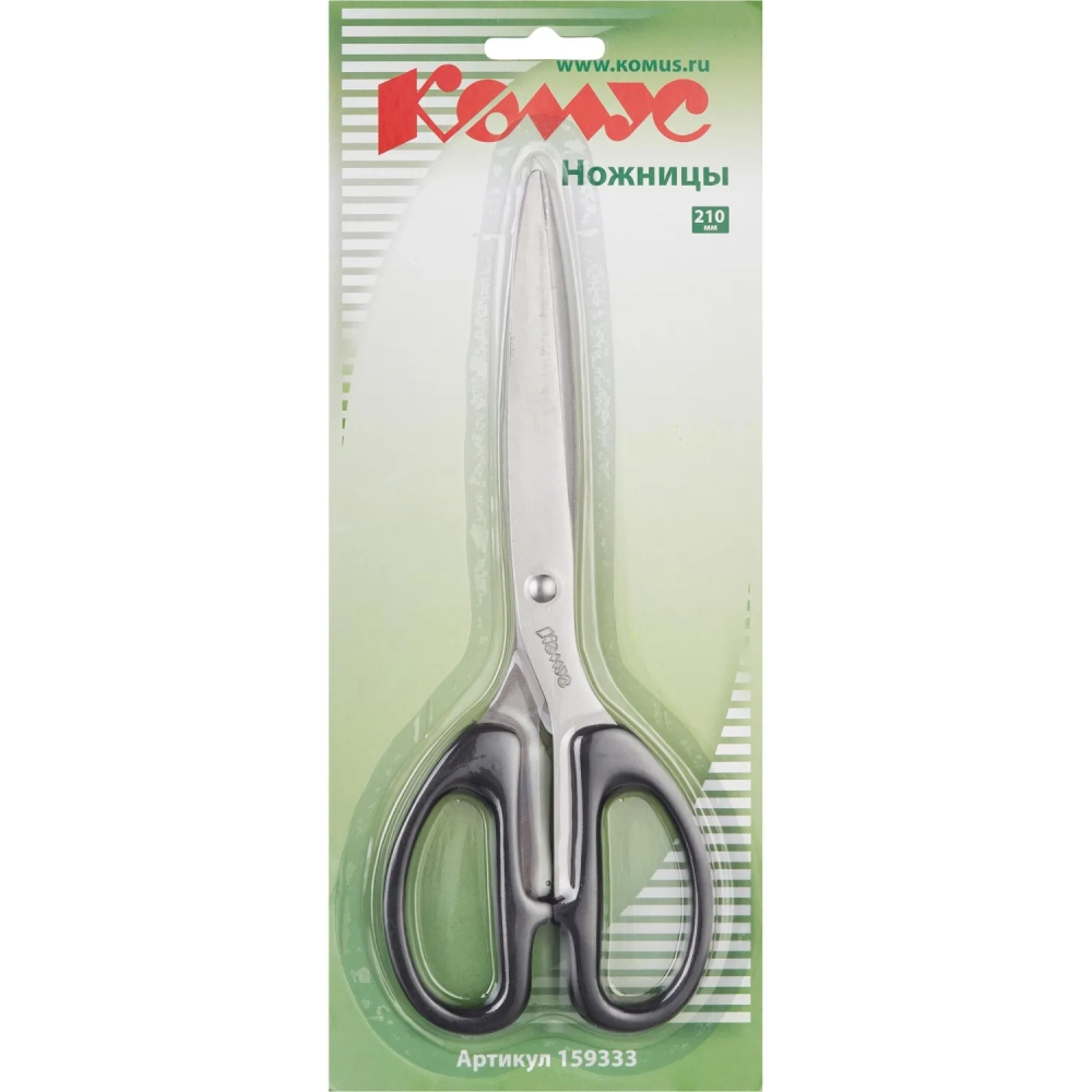 Ножницы КОМУС 210 мм с пластик. эллиптическими ручками, цвет черный