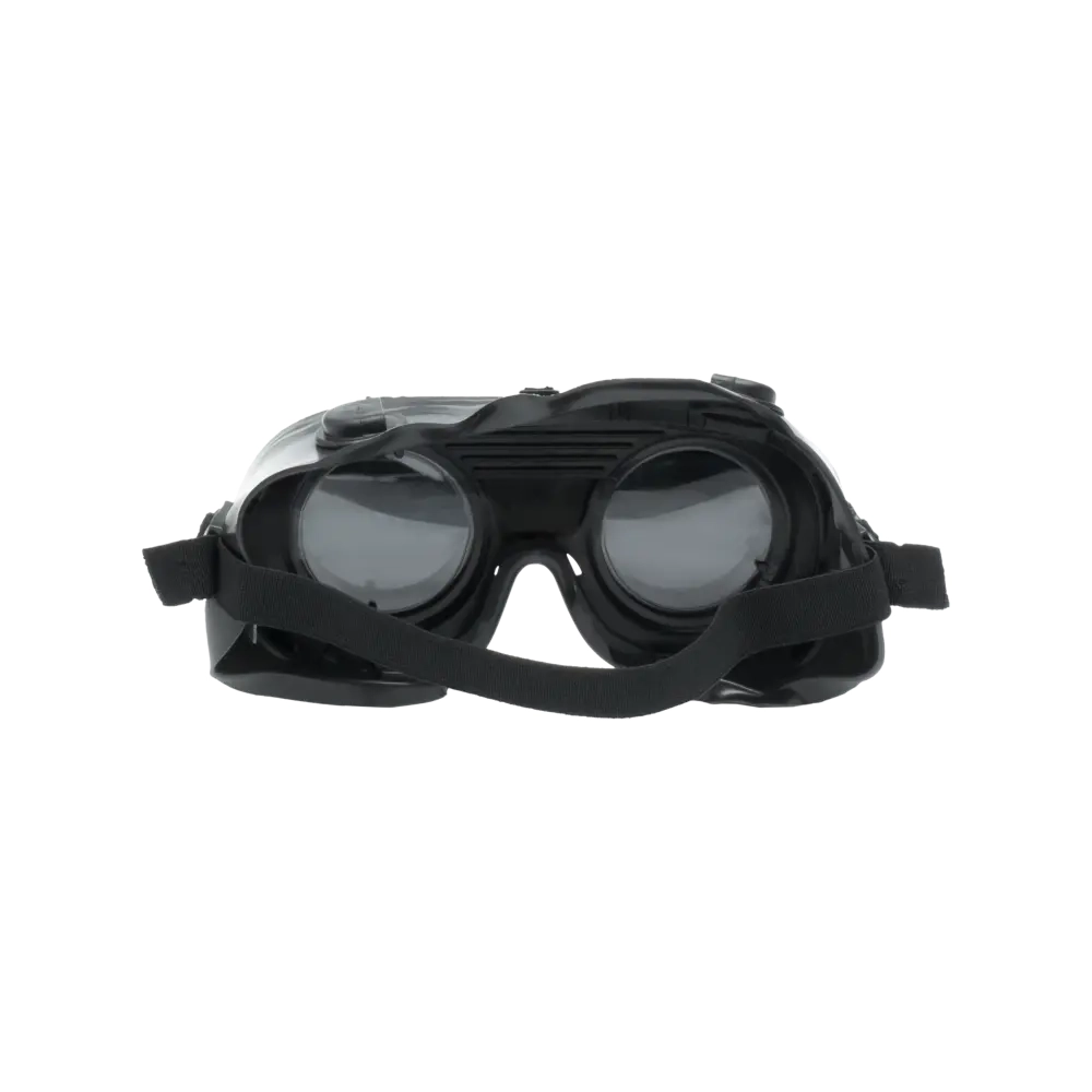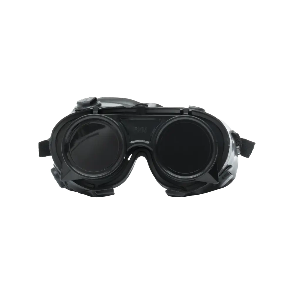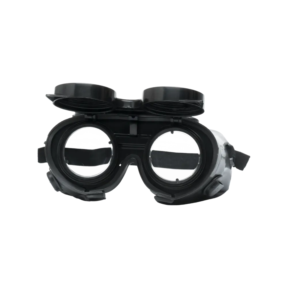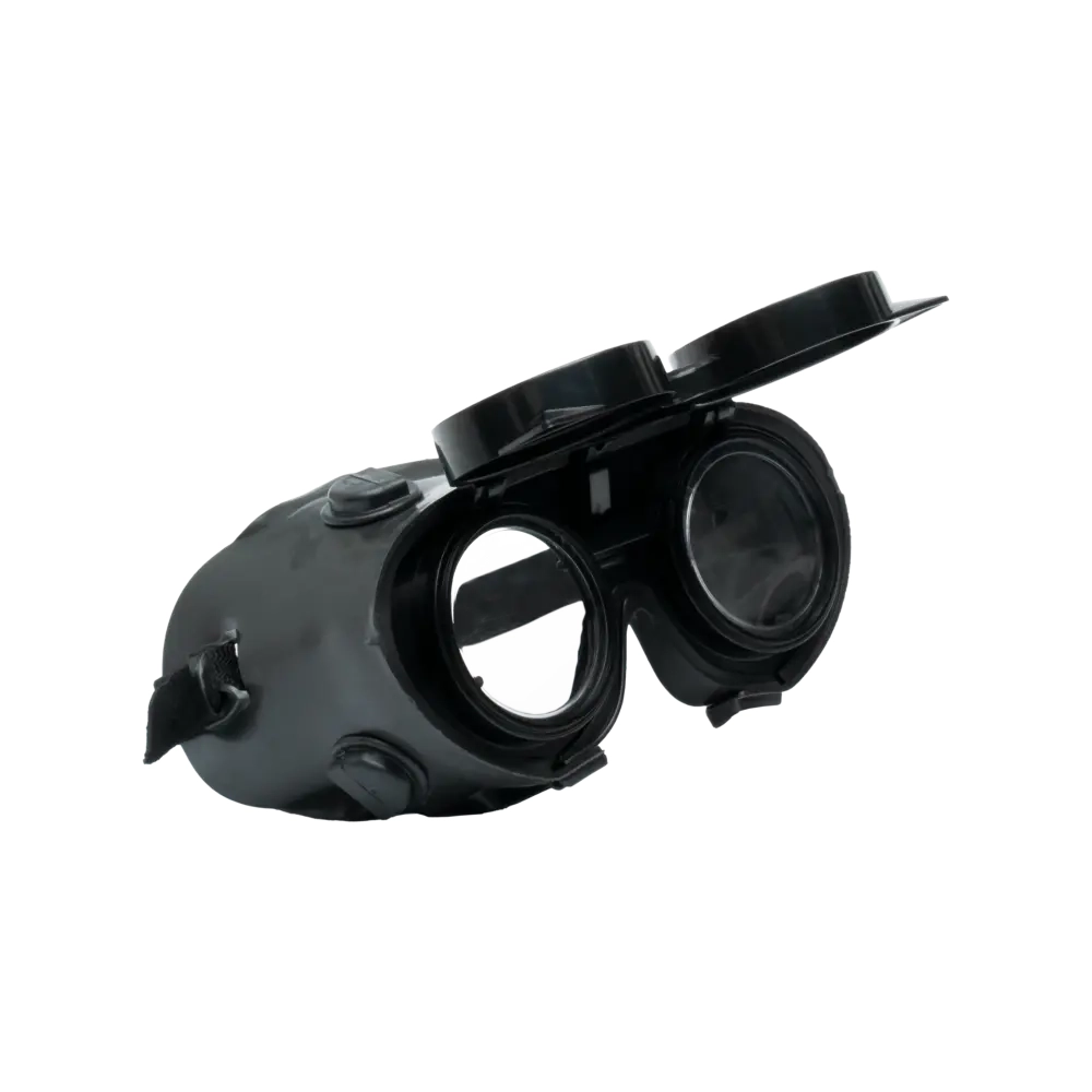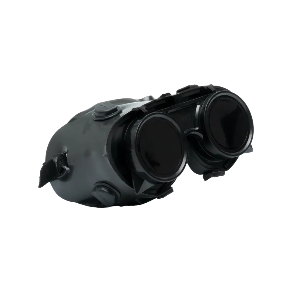 Защищают от слепящей яркости видимого и инфракрасного излучения, воздействия твёрдых частиц. Имеют откидные линзы среднего затемнения. Очки защищают от кратковременных вспышек яркого света в инфракрасном и видимом излучении. Очки выполнены в закрытой форме, из мягкого материала, для плотного прилегания к лицу работника. Используемая непрямая вентиляция предотвращает запотевание линз, а так же не пропускает потенциально опасные мелкие летящие частицы, которые могут возникнуть при работе.