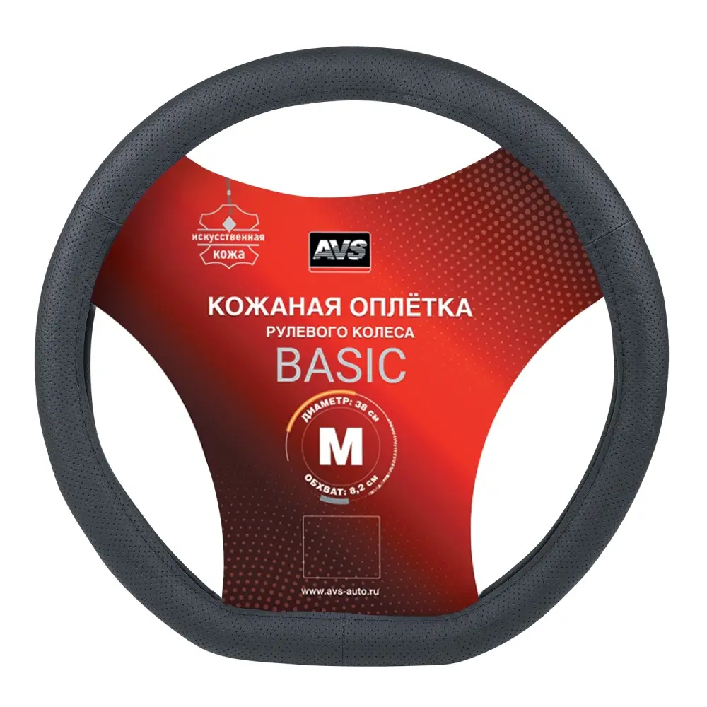 Оплетка на руль D-образная (иск. кожа) AVS IL-296DS -M-B (размер M, черный) - Серия "Basic"