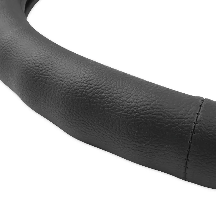Оплетка из натуральной кожи с гладкой классической фактурой. Придаст респектабельности любому интерьеру автомобиля. Волнообразная форма с углублениями под пальцы способствует удобному хвату руля при маневренном вождении.