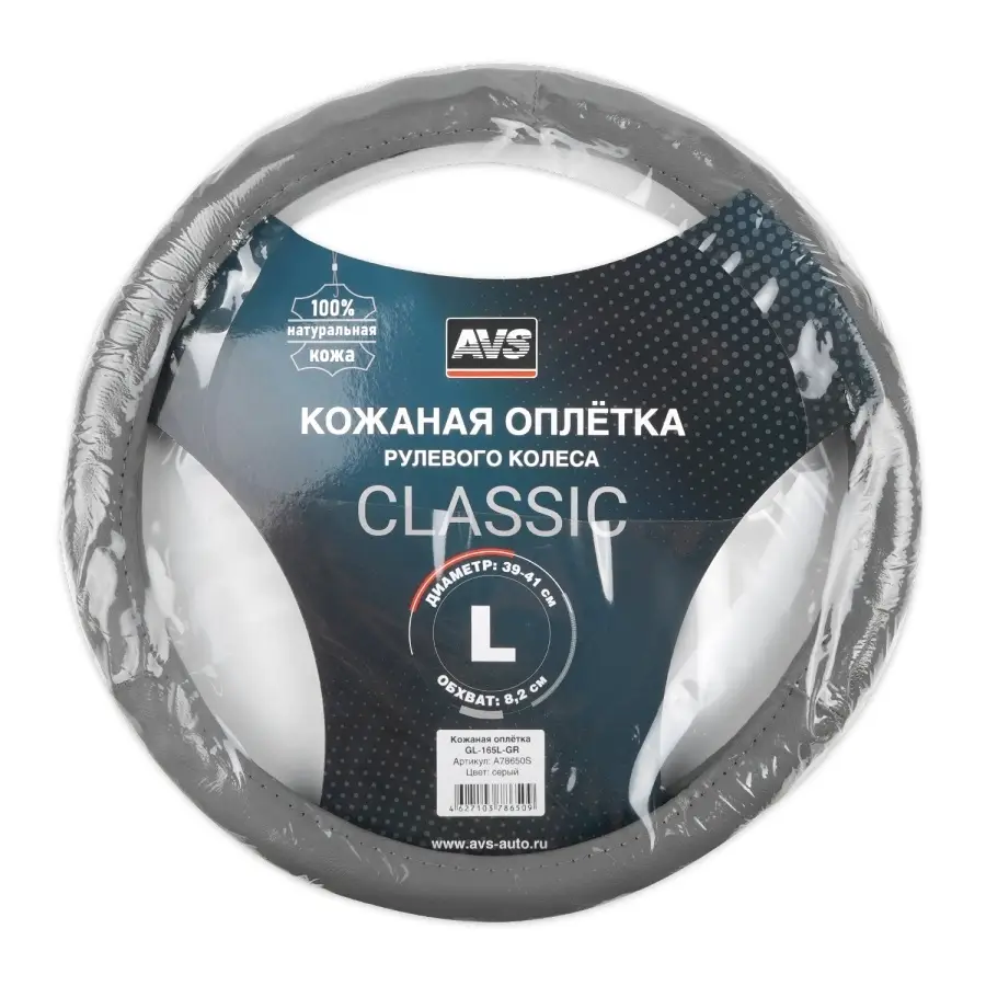 Оплетка на руль (нат. кожа) AVS GL-165L-GR (размер L, серый) - Серия "Classic"