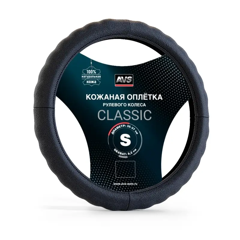 Оплетка на руль (нат. кожа) AVS GL-165S-B (размер S, черный) - Серия "Classic"