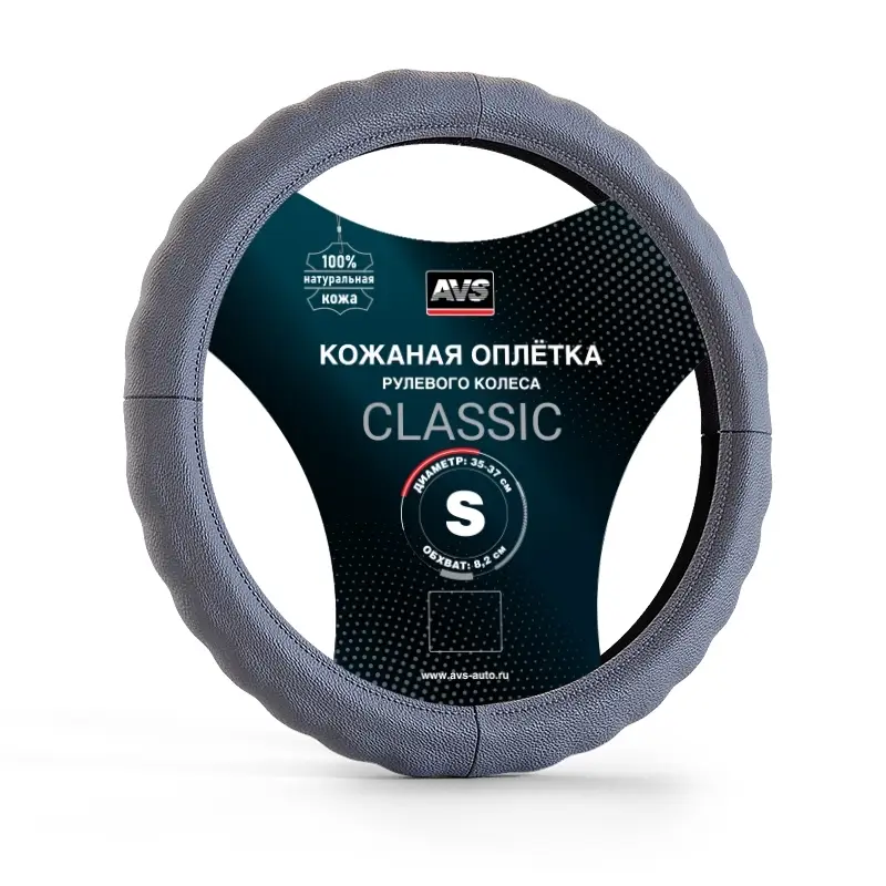 Оплетка на руль (нат. кожа) AVS GL-165S-GR (размер S, серый) - Серия "Classic"