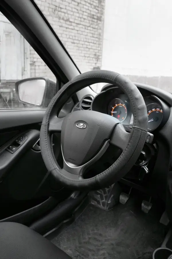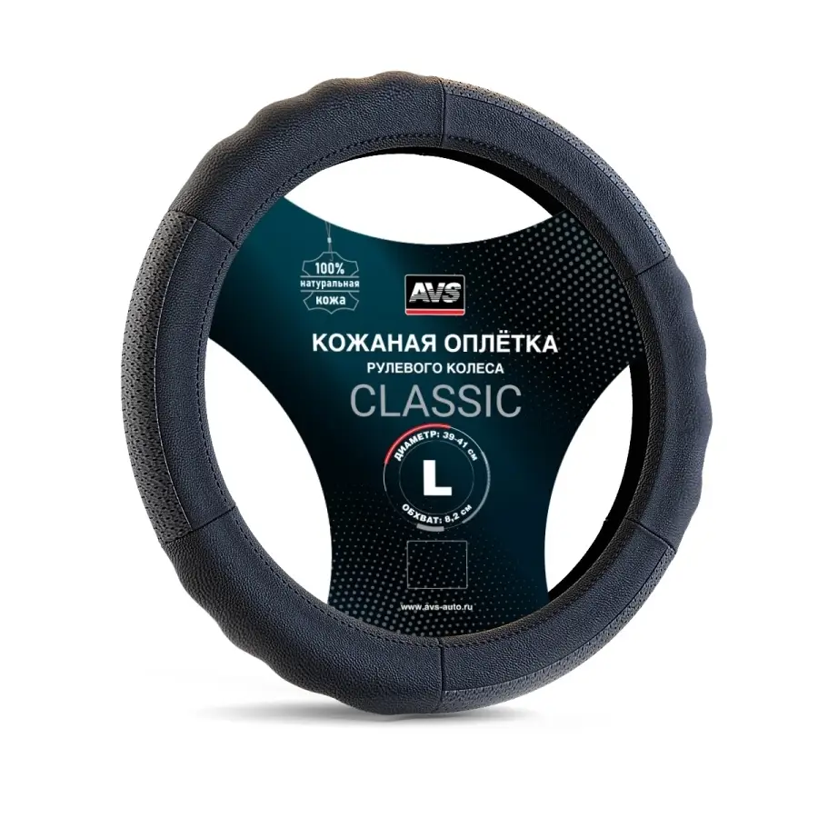 Оплетка на руль (нат. кожа) AVS GL-200L-B (размер L, черный) - Серия "Classic"