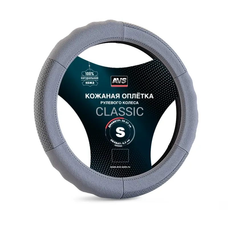 Оплетка на руль (нат. кожа) AVS GL-200S-GR (размер S, серый) - Серия "Classic"