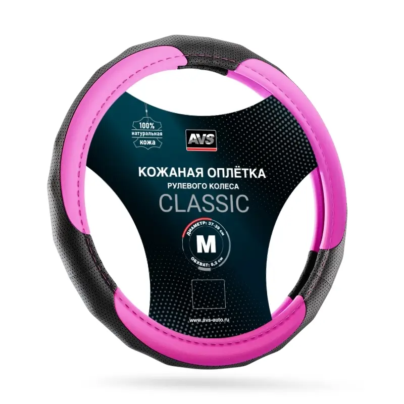 Оплетка на руль (нат. кожа) AVS GL-910M-PK (размер M, розовый) - Серия "Classic"