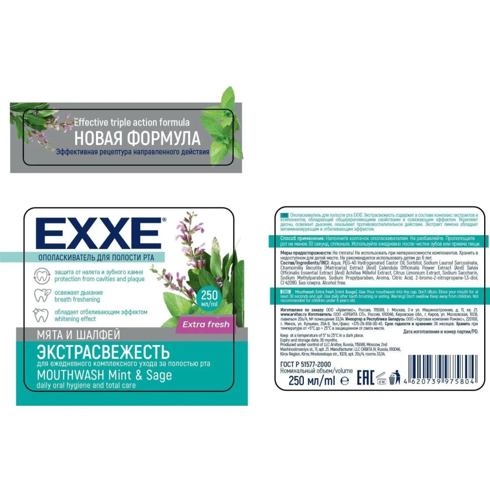 Ополаскиватель для полости рта EXXE Экстра свежесть(голубой) 250мл С0006466
