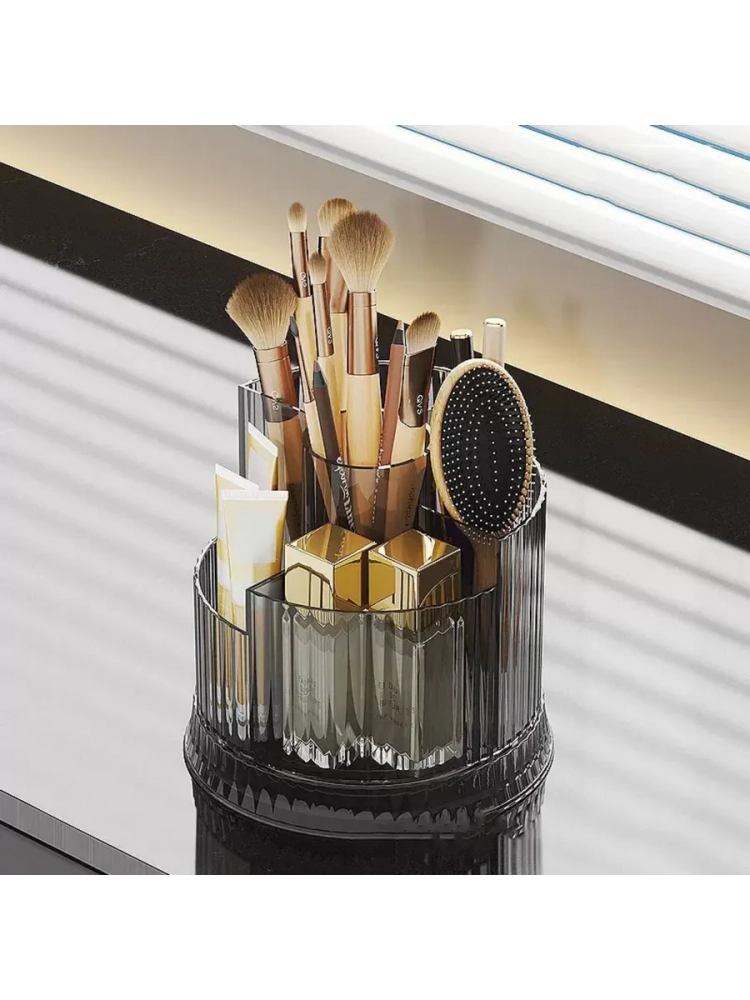 Органайзер для хранения косметики. Большой и вместительный, он станет незаменимым помощником в организации косметики, мелочей, лекарств и других необходимых принадлежностей. Органайзер для хранения косметики позволяет разложить ваши средства так, чтобы она всегда была под рукой. Органайзер под косметику имеет 5 отделений. Несколько обычных, в которых можно хранить небольшие духи, помаду или другие мелочи и одно круглое посередине для иксточек. Наш органайзер на стол изготовлен из прочного и долговечного пластика, который не выделяет запахов и безопасен для здоровья. Он также прост в уходе и не боится влаги. Он занимает минимум места. Мы с уверенностью можем сказать, что этот настольный органайзер для косметики станет отличным подарком для вашей любимой девушки, подруги или сестры. Ощутите идеальный баланс функциональности и стиля с этим незаменимым аксессуаром. Органайзер для косметики заменит вам ненужные контейнеры и коробочки с косметикой, освободит пространство на столе.