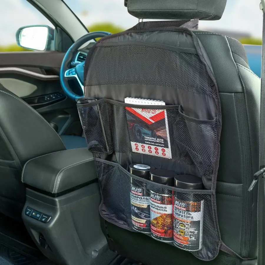 Удобен для хранения и перевозки небольших вещей в салоне автомобиля. MP3 плеер, CD диски, мобильный телефон, газеты и журналы, пара небольших бутылок с водой – всё это Вы сможете разместить на задней спинке сиденья.