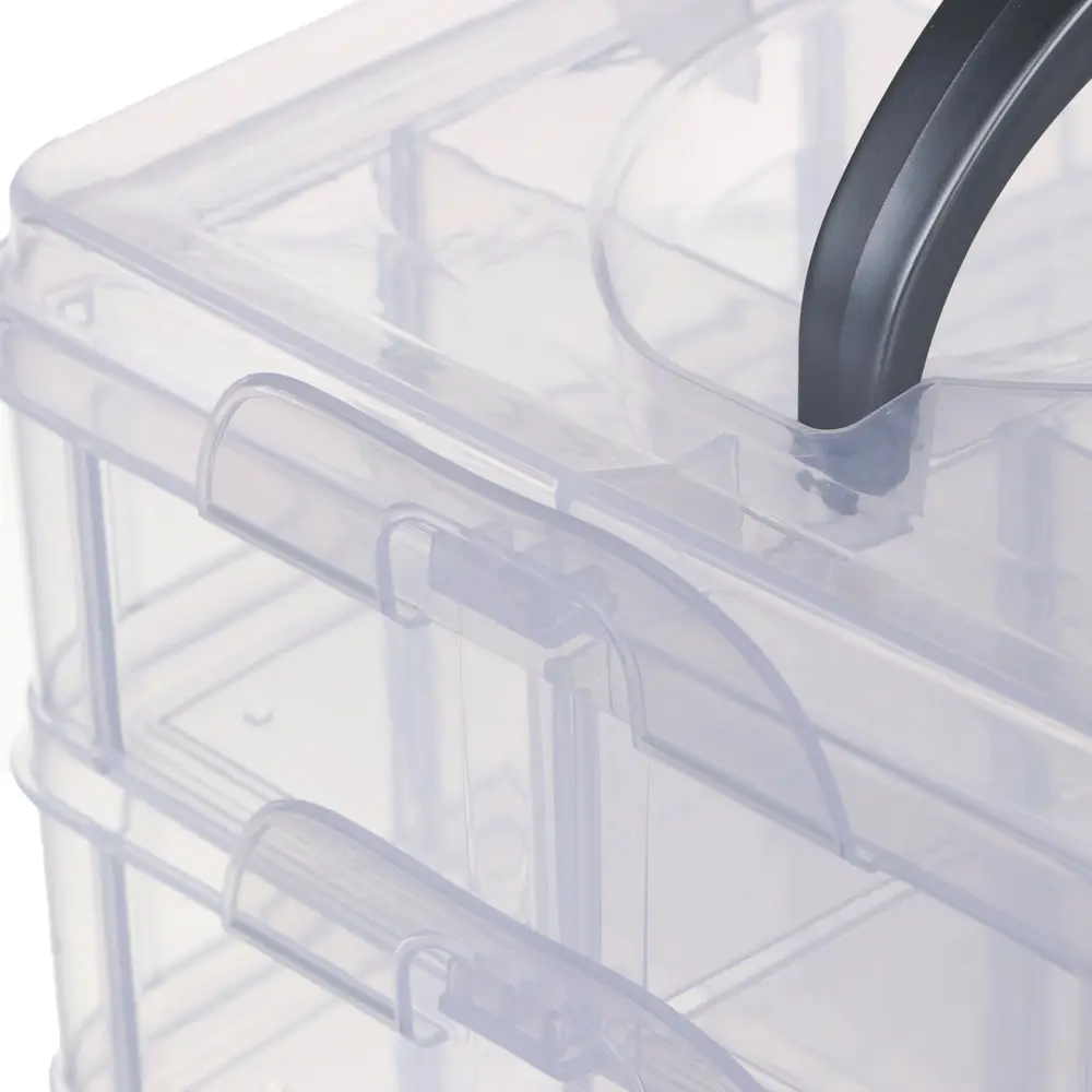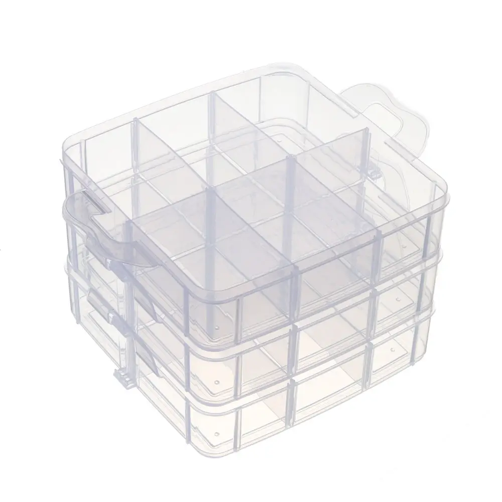 Универсальный трёхъярусный органайзер VETTA станет вашим надёжным помощником в организации пространства. Благодаря продуманной конструкции с 18 прозрачными ячейками и компактным размерам 15х15х12,5 см, этот стильный органайзер идеально впишется в любой интерьер, будь то рабочий стол или полка в шкафу. Прозрачный пластик позволяет мгновенно видеть содержимое каждой ячейки, а квадратная форма обеспечивает оптимальное использование пространства. Удобная ручка делает переноску органайзера максимально комфортной, а надёжная фиксация всех уровней гарантирует стабильность конструкции даже при полной загрузке.