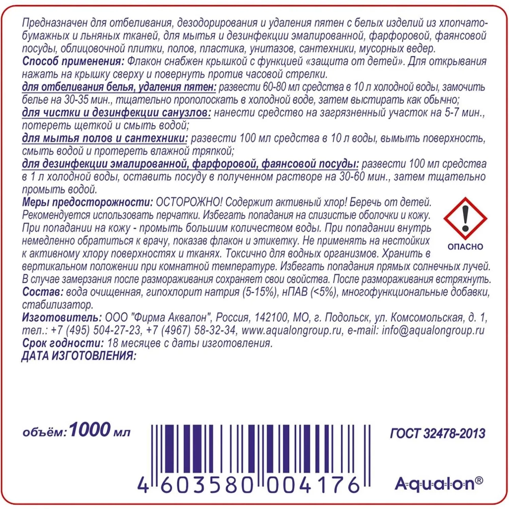 Отбеливатель MODUS гель-концентрат Белизна-М, 1л