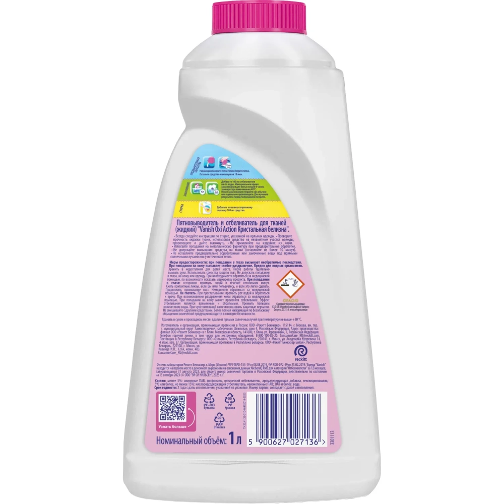 Отбеливатель VANISH OXI Action Крист.белизна Пятн-ль,отб.сп.д/бел ткан. 1л