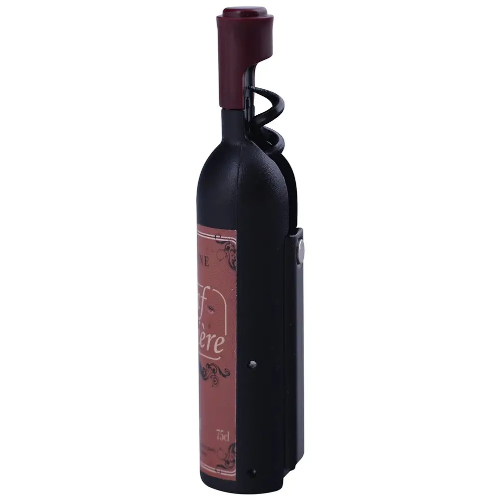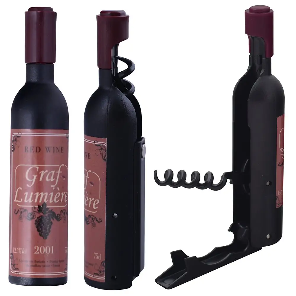 Штопор-открывалка с магнитом — креативное решение, которое выполняет 2 функции. С помощью этого инструмента можно откупоривать винные пробки и открывать пивные бутылки. Штопор и открывалка выдвигаются из корпуса декоративной бутылки и задвигаются обратно, что обеспечивает удобство и безопасность хранения изделия. Чтобы приспособление всегда было под рукой, прикрепите его на металлическую поверхность с помощью магнита. Открывалка-штопор компактна, ее удобно брать с собой в поездки и на пикник. Размер изделия 11,5х2,3 см. Корпус изготовлен из пластмассы (полипропилен), штопор и открывалка из металла.