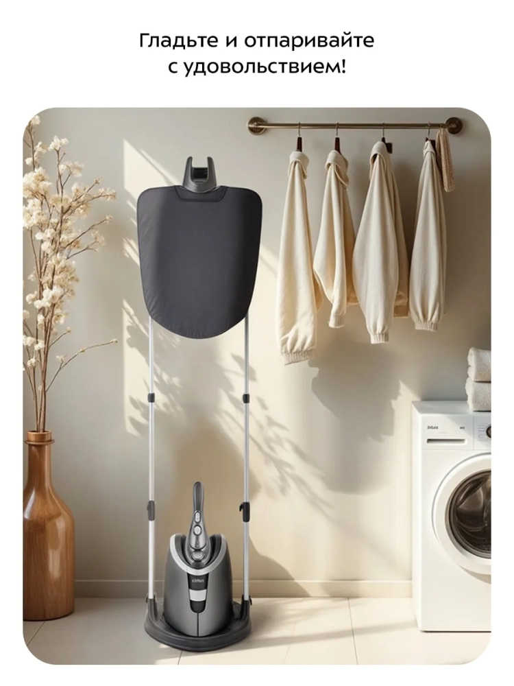 Вертикальный отпариватель Kitfort КТ-927 — это инновационное устройство, которое станет незаменимым помощником в уходе за одеждой и текстильными изделиями. Благодаря мощности 2100 Вт, он эффективно справляется с задачами, которые обычно выполняет паровой утюг. Этот бытовой прибор позволяет быстро и качественно прогладить паром любые вещи без необходимости их снятия с вешалки или стойки. Отпариватель оснащен подогревателем пара в утюжке, что обеспечивает равномерное распределение тепла и возможность работы в двух режимах: глажка и отпаривание. Уникальная конструкция утюжка с поворотным механизмом на 90 градусов делает процесс обработки одежды более удобным. Съемный резервуар для воды рассчитан на 30 минут непрерывной работы, что позволяет обрабатывать большое количество одежды за один раз. Двойная телескопическая стойка придает конструкции дополнительную устойчивость и жесткость. В комплект входят держатель для утюжка, гладильная доска с регулируемым наклоном для удобства использования, колодка для воротничков и насадка для деликатных тканей. Варежка защищает руки от ожогов во время работы. Отпариватель Kitfort КТ-927 не только разглаживает складки на одежде, но также дезинфицирует её благодаря горячему пару, который уничтожает пылевых клещей и микроорганизмы. Это делает его идеальным выбором как для домашнего использования, так и для профессиональной глажки текстиля.