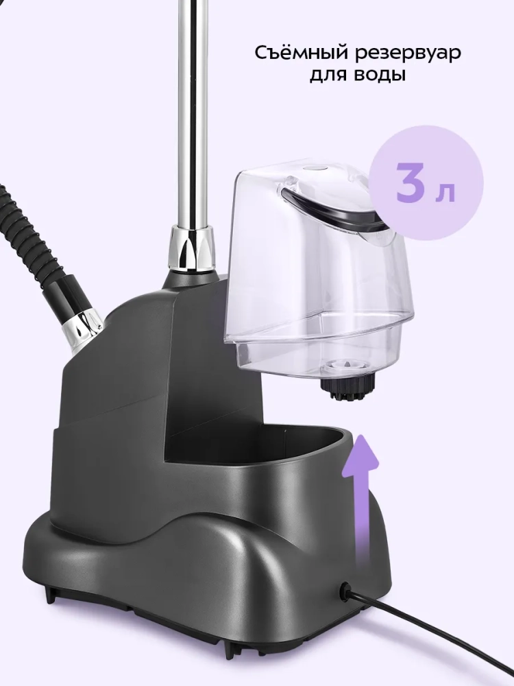 Отпариватель Kitfort КТ-9358 позволяет быстро прогладить вещи и изделия из текстиля. В отличие от утюгов, которыми гладят ткани и одежду, расположенные горизонтально, отпаривателем можно обрабатывать одежду и ткани, расположенные как горизонтально, так и вертикально. При этом одежда может висеть на вешалке отпаривателя, на обычной вешалке, подвешенной к отпаривателю, на сушилке для белья или на веревке. Отпариватель — серьезный конкурент паровых утюгов, это более функциональное и универсальное бытовое устройство, чем утюг. Кроме глажки и отпаривания, отпариватель обрабатывает вещи мощной струей горячего пара, таким образом производя чистку и дезинфекцию. Помимо отпаривания одежды вы можете отпарить занавески и портьеры (для этого их не обязательно снимать), обивку мягкой мебели и матрасы. При этом вы не только разгладите складки, но и освежите вещи, а также продезинфицируете их, так как горячий пар хорошо убивает пылевых клещей и другие микроорганизмы. Для достижения лучшего эффекта при чистке можно надеть на утюжок ворсовую щетку-зажим. Отпариватель позволяет прогладить вещи, которые обычно не гладят, например, пышные платья со сложной структурой, шубы и дубленки. Также с его помощью можно освежить к сезону вещи, у которых при хранении появился затхлый запах — отпариватель эту проблему решает без стирки. Пар довольно хорошо устраняет посторонний запах с одежды. Например, если вы находились в прокуренном помещении, и одежда пропахла табаком, то с помощью отпаривателя можно быстро убрать запах и освежить ее. Напряжение: ~220–240 В, 50/60 Гц. Мощность: 2200 Вт. Класс защиты от поражения электрическим током: I. Емкость резервуара для воды: 3 л. Время разогрева: до 45 с. Максимальная подача пара: 45 г/мин. Время подачи пара: ≥66 мин. Ширина вешалки: 46 см. Длина парового шланга: 1,6 м. Длина шнура: 1,9 м. Высота отпаривателя с разложенной стойкой: 1,7 м. Размер устройства: 220 х 360 х 420 мм.