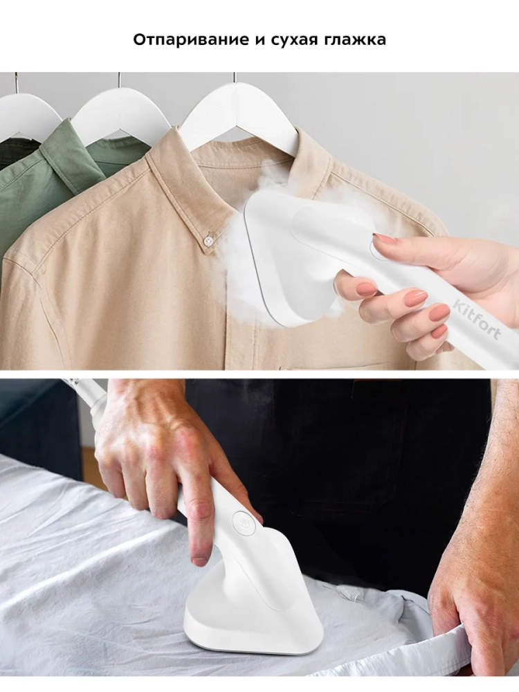Отпариватель - устройство для разглаживания изделий из текстиля с помощью потока горячего пара. Отпариватель Kitfort КТ-9110 позволяет быстро прогладить любые вещи и изделия из текстиля. Быстрый разогрев отпаривателя поможет провести тщательный уход за вещами, не отнимающий много времени. Отпариватель - серьезный конкурент паровых утюгов и более функциональное и универсальное устройство, чем утюг. Под действием пара волокна ткани не растягиваются и не сжимаются, как под воздействием утюга, а приобретают объемность и эластичность. Отпариватель не деформирует ткани и не оставляет заломов или лоснящихся пятен на одежде. Помимо отпаривания одежды, вы можете отпарить занавески и портьеры (для этого их не обязательно снимать), обивку мягкой мебели, матрасы или мягкие игрушки. При этом вы не только разгладите складки и вернете форму вещам, но и освежите и продезинфицируете их, так как горячий пар хорошо убивает пылевых клещей и другие микроорганизмы. Благодаря мощному потоку пара отпариватель позволяет разгладить даже те вещи, которые обычно не гладят - пышные платья со сложной структурой, шубы, дубленки или куртки. Также с его помощью можно готовить к сезону вещи, у которых при хранении появился затхлый запах - отпариватель эту проблему решает без всякой стирки. Горячий пар устраняет неприятные запахи и освежает ткани, поэтому он отлично поможет в ситуации, когда вы один раз надевали вещь и хотите сделать это еще раз, не стирая ее. Если вы находились в помещении, полном сигаретного дыма, и одежда пропахла табаком, то с помощью отпаривателя можно быстро убрать запах и освежить ее. Отпариватель КТ-9110 имеет 5 уровней подачи пара для самых разных видов тканей.