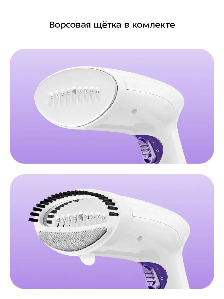 В комплекте к отпаривателю поставляется мерный стакан для удобного добавления воды в резервуар и ворсовая насадка, которая позволяет почистить вещи от пыли, волос или шерсти при отпаривании.