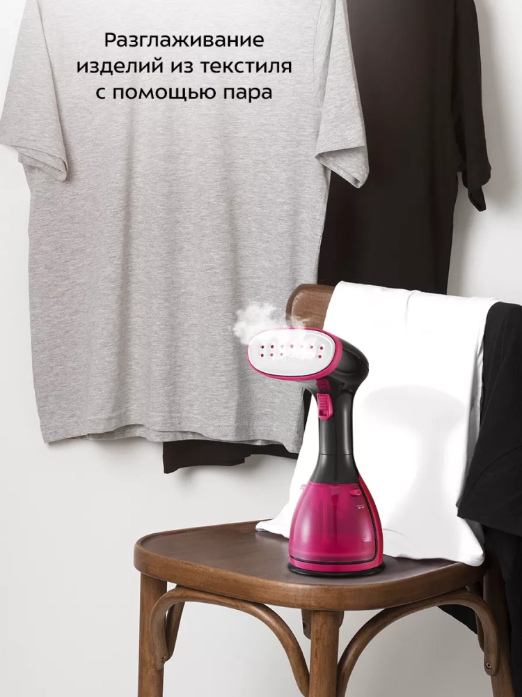Отпариватель не деформирует ткани и не оставляет заломов или лоснящихся пятен на одежде. Помимо отпаривания одежды вы можете отпарить занавески и портьеры (для этого их не обязательно снимать), обивку мягкой мебели, матрасы или мягкие игрушки. При этом вы не только разгладите складки и вернете форму вещам, но освежите и продезинфицируете их, так как горячий пар хорошо убивает пылевых клещей и другие микроорганизмы.