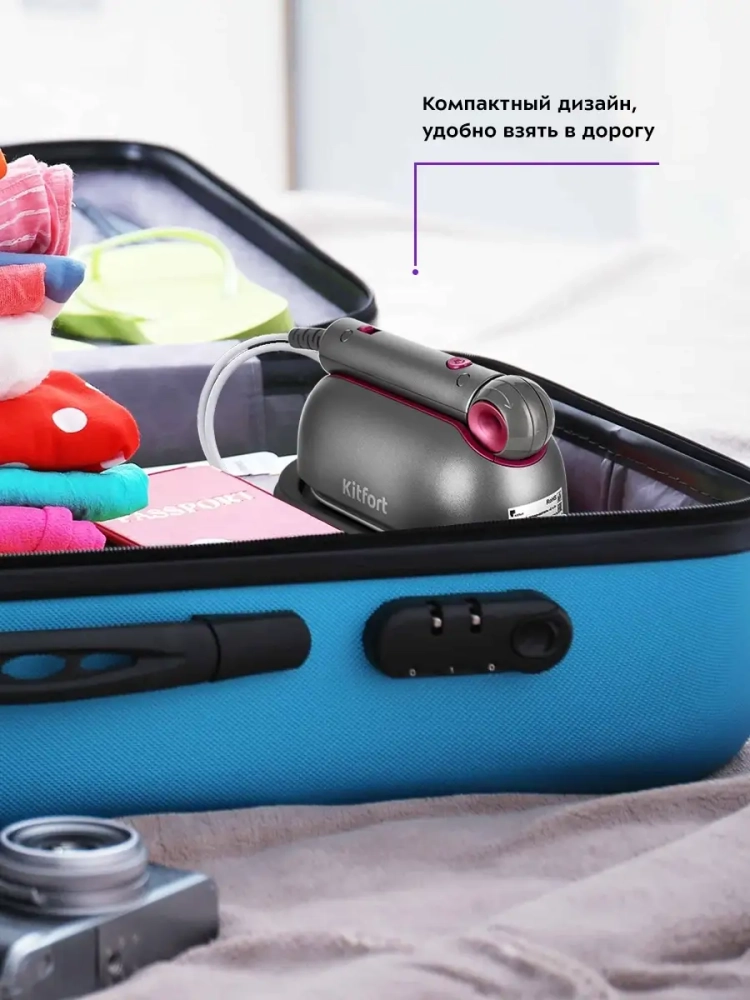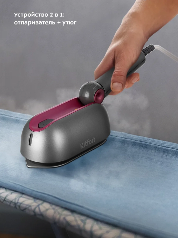 Отпариватель — устройство для разглаживания изделий из текстиля с помощью потока горячего пара. Ручной отпариватель Kitfort «2 в 1» КТ-994 обладает такими достоинствами, как: стильный дизайн, компактность и многофункциональность. Его удобно брать с собой в дорогу, путешествия, загородные поездки, командировки и даже на работу, если вы не успели погладить пиджак. Благодаря складывающейся ручке он будет занимать меньше места в чемодане или на полке.