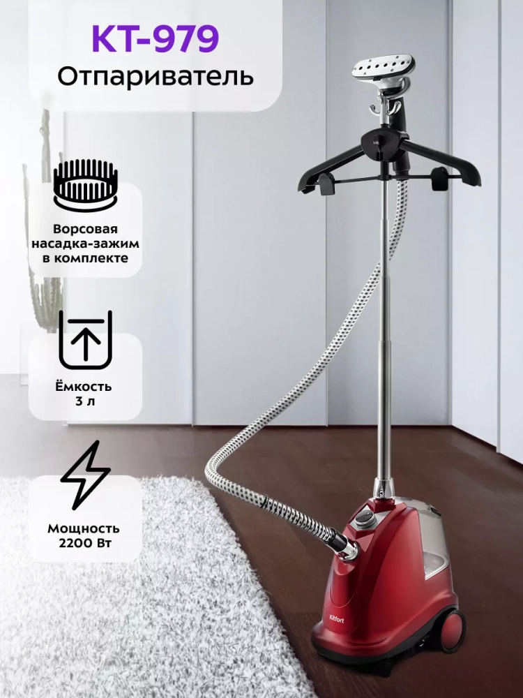 Отпариватель вертикальный для одежды КТ-979 - 2200 Вт — это мощный паровой прибор, который станет незаменимым помощником в уходе за вещами и мебелью. Этот пароотпариватель от Kitfort обеспечивает эффективное отпаривание и глажку одежды, заменяя традиционные утюги. Благодаря вертикальному отпаривателю, вы сможете быстро и качественно разгладить любые складки на одежде, не прибегая к использованию утюга.