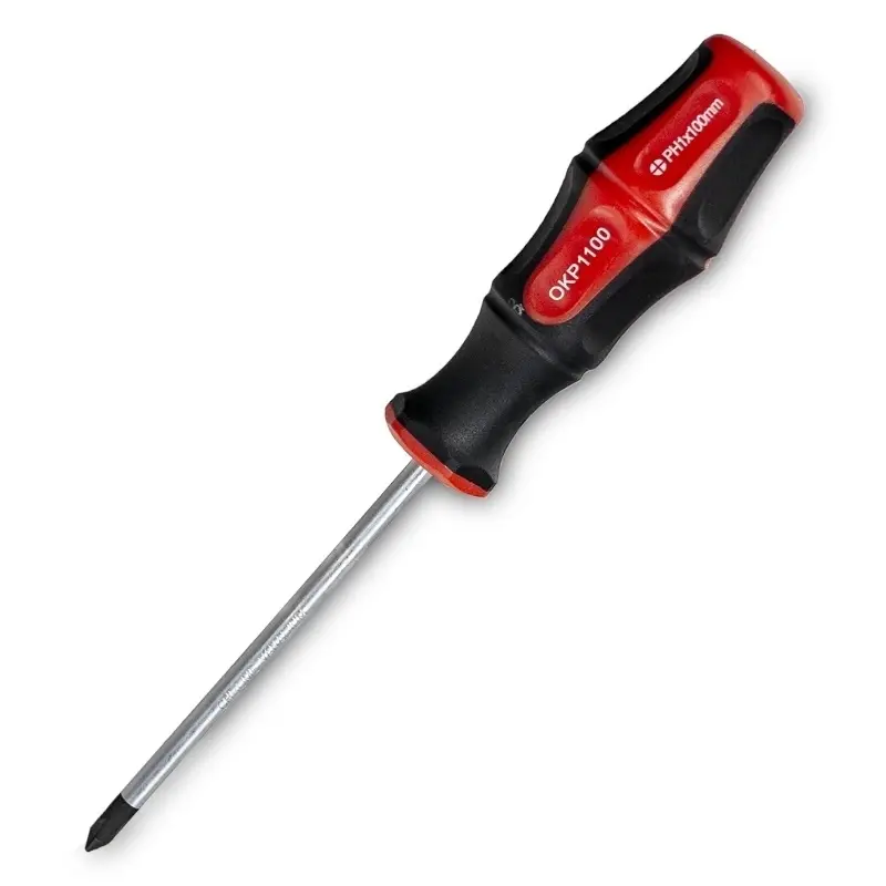Отвертка крестовая (крестообразная). Предназначена для ремонтно-монтажных работ путём завинчивания/отвинчивания крепёжных изделий с резьбой. Имеет стандартный крестовой профиль рабочей части. Изготовлена в соответствии с требованиями стандарта DIN 5262. Изделия комплектуются высококачественными стержнями из хромованадиевой стали. Намагниченные рабочие части отверток в состоянии удерживать крепеж, что очень часто помогает при работе в труднодоступных местах. Эргономичные двухкомпонентные рукоятки удобно лежат в руке.