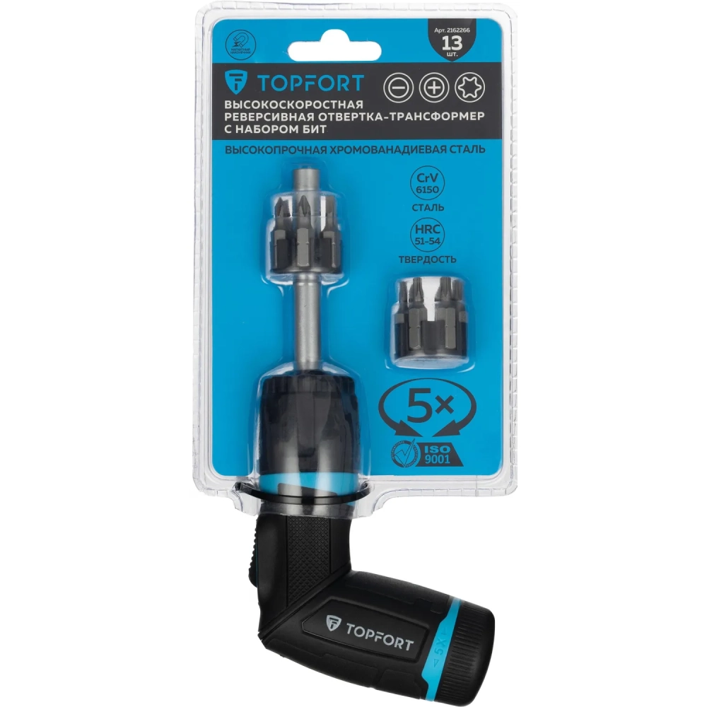 Отвертка складная Topfort со встроен.трещоткой 5Х и бит 13 пред наб(576113)