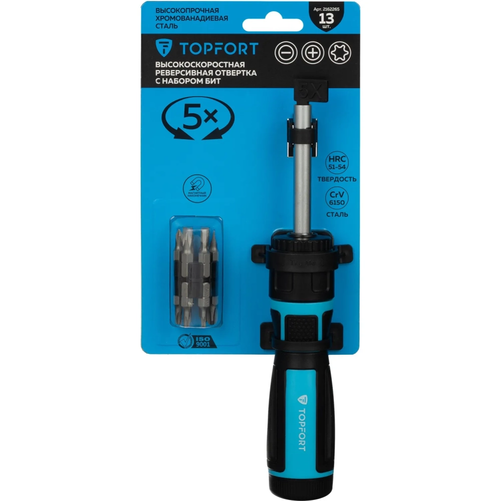 Отвертка Topfort со встроенной трещоткой 5Х и битами 13 предм (569G212)