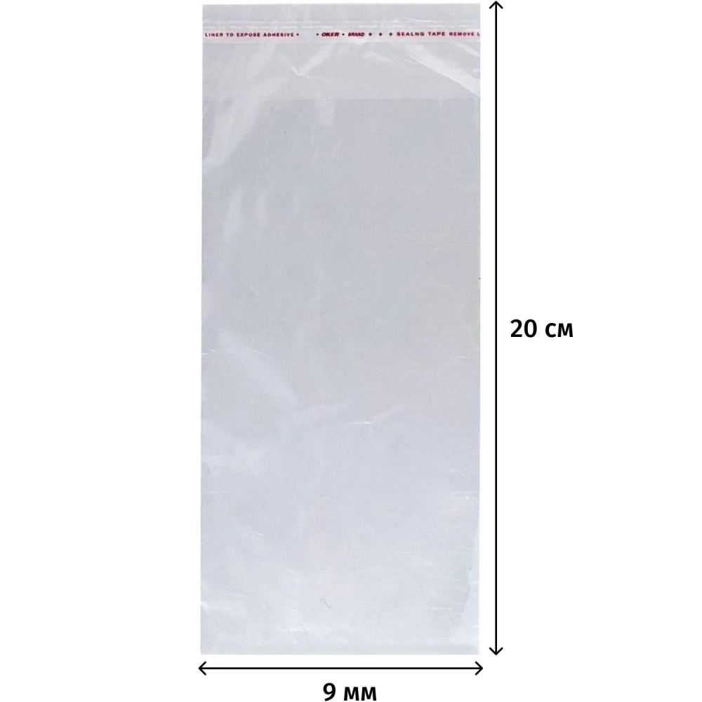 Пакет БОПП 90х200+40 мм клапан/скотч 20 мкм 200 шт/уп