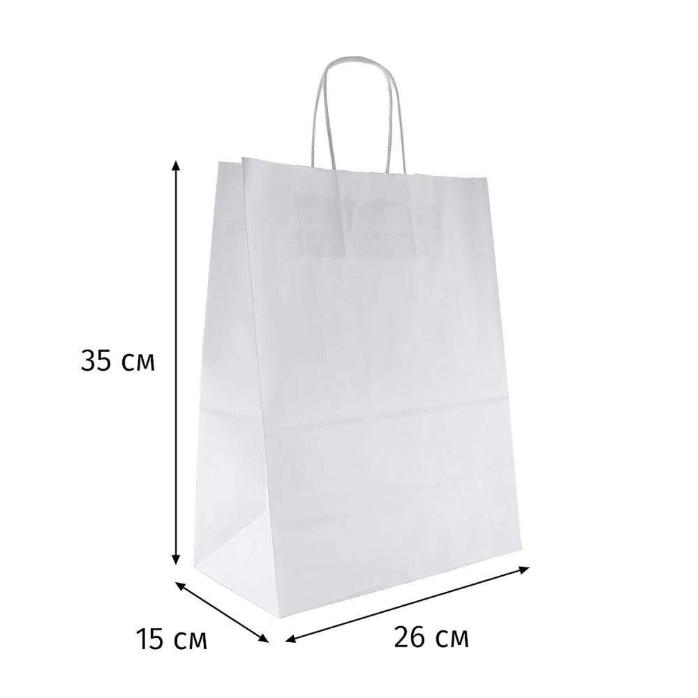 Пакет бумажный 260х150х350 мм, 80 гр/м2,с круч. ручками, белый, 200 шт/уп