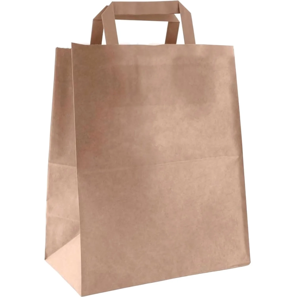 Пакет бумажный 320x200x320мм, 80гр/м2, с плоскими ручками, крафт, 160шт/уп