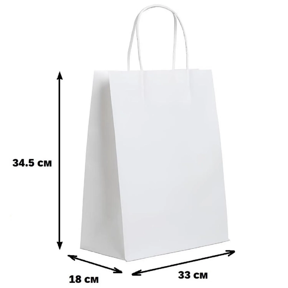 Пакет бумажный 330х180х345 мм, 80 гр/м2, с круч. ручками, белый, 200 шт/уп