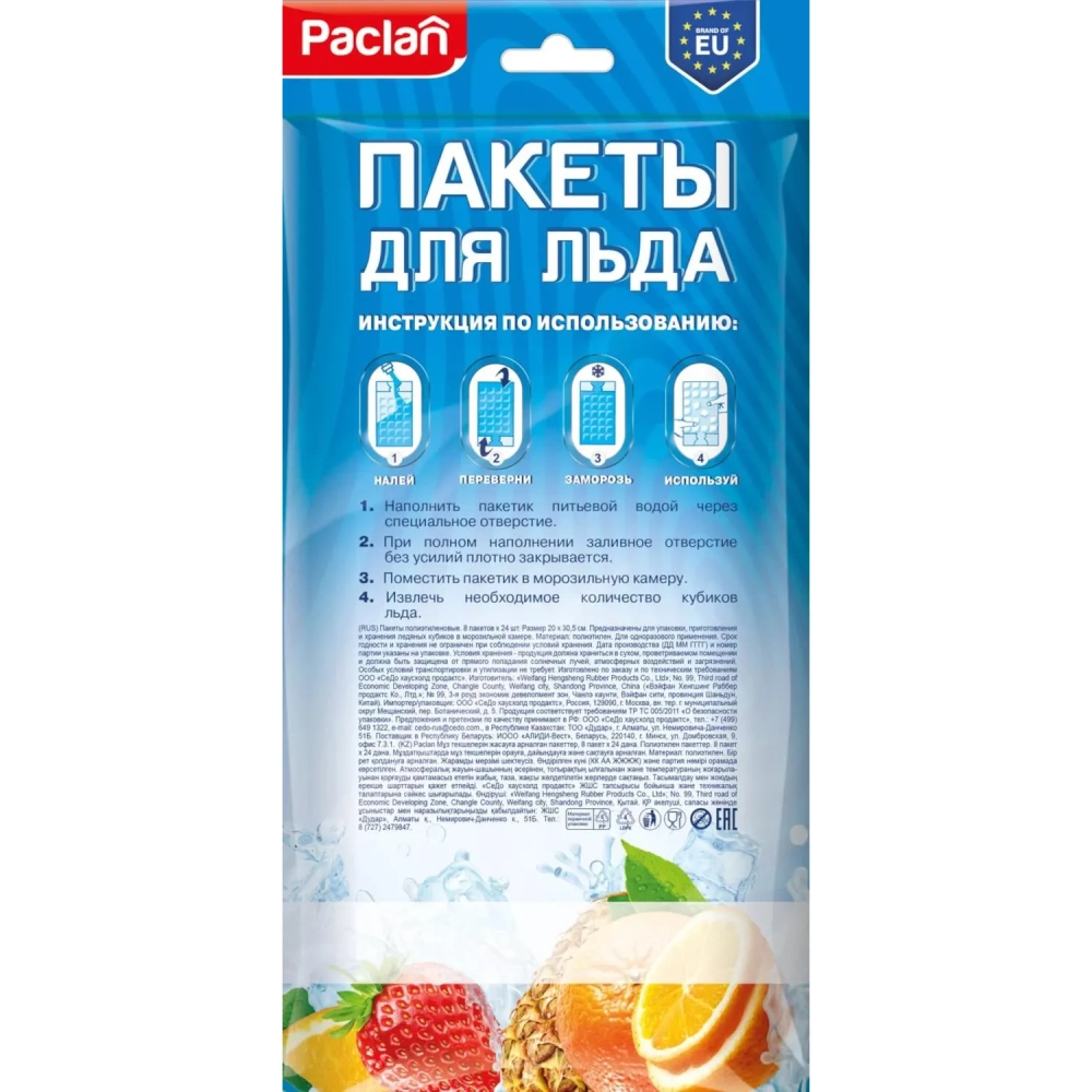 Пакет фасовочный для льда Paclan, 8 шт/уп, 192 кубика