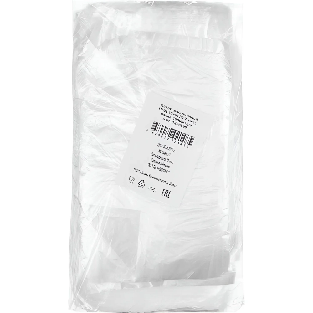 Пакет фасовочный ПНД 10+8х20 7 мкм, пачка 1000 шт/уп
