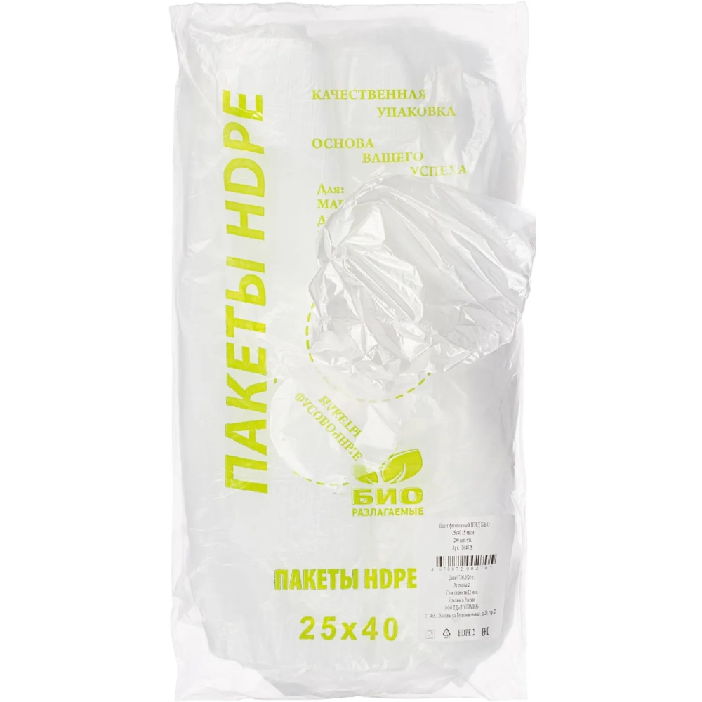 Пакет фасовочный ПНД БИО 25х40 15мкм 250шт /уп