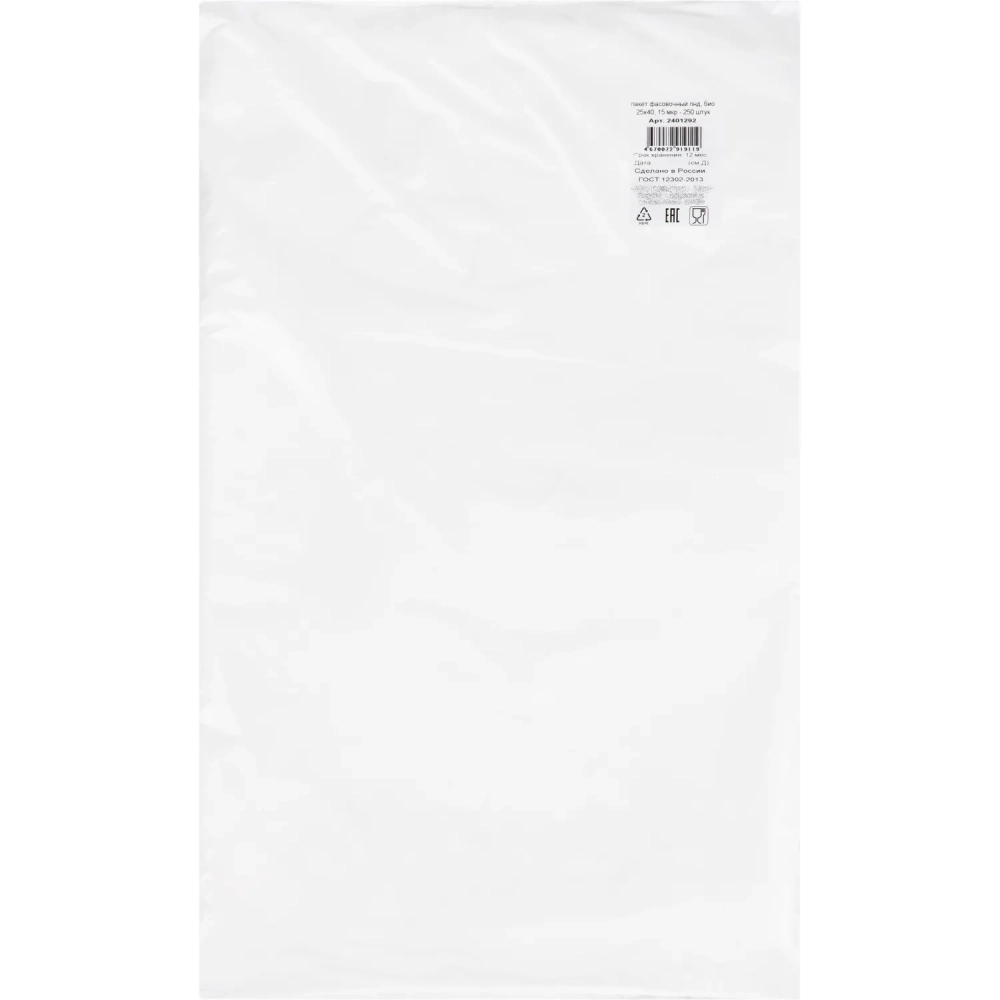 Пакет фасовочный ПНД БИО 25х40 см, 15 мкм 250 шт/уп