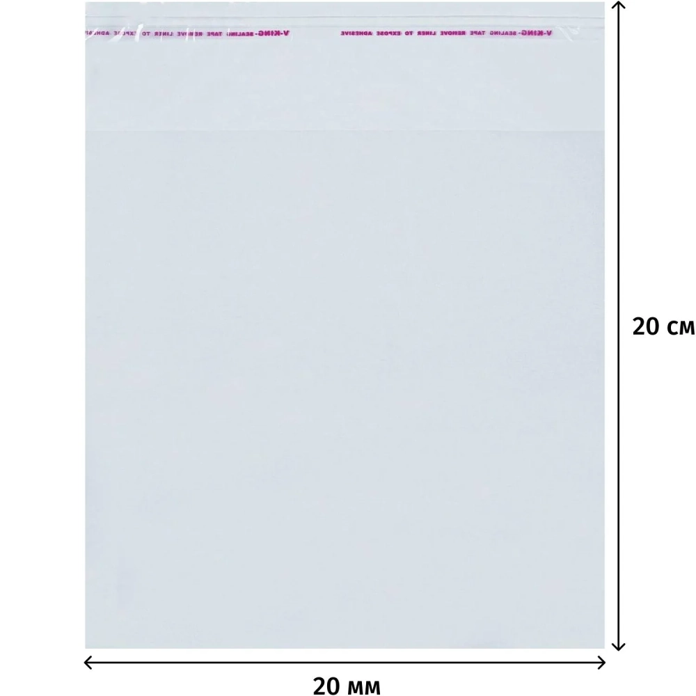 Пакет фасовочный ПП 20x20+5 с клеевым клапаном 20мкм 100 шт/уп