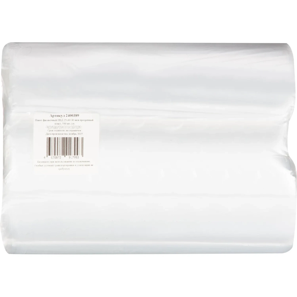 Пакет фасовочный ПВД 25х40 30 мкм прозрачный пласт, 500 шт./уп
