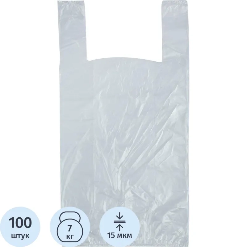 Пакет-майка ПНД 28+13x57 см, 15 мкм, 100 шт/уп, прозрачный