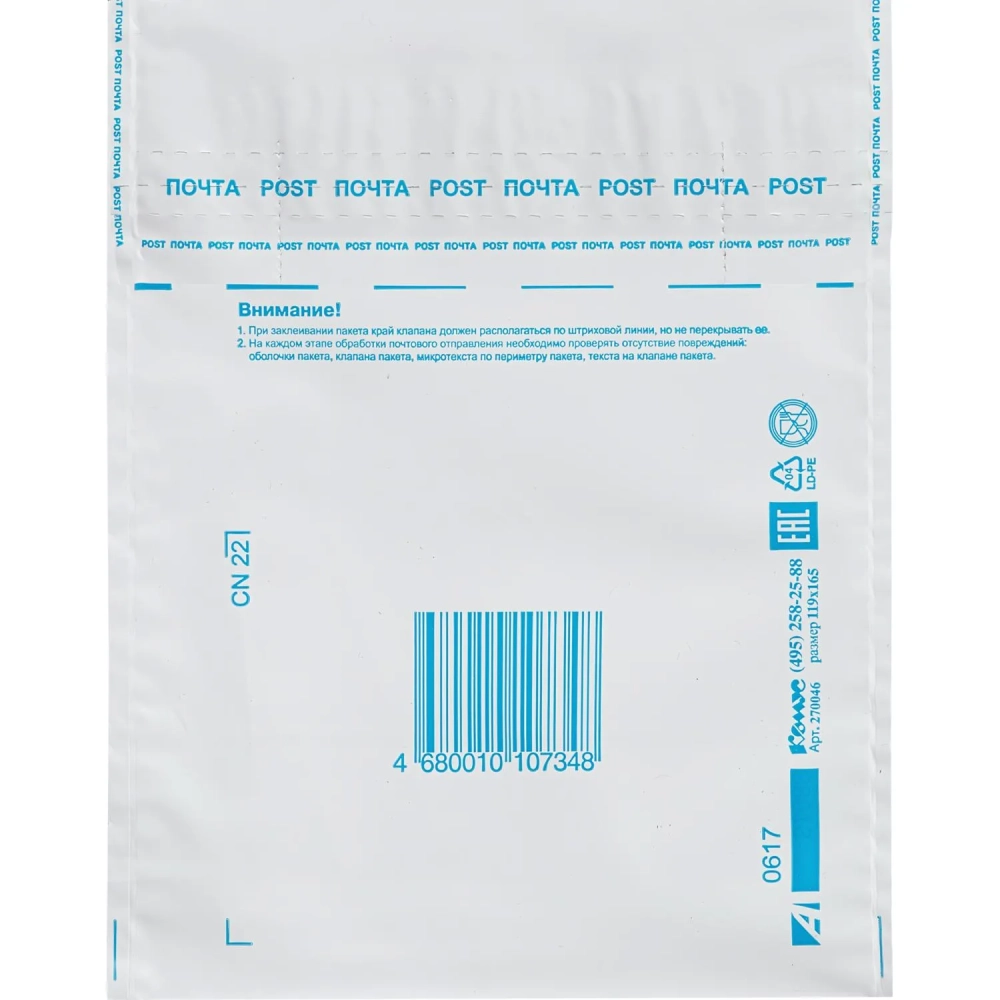 Пакет почтовый из 3-х сл.п/э 119х165 стрип Фин