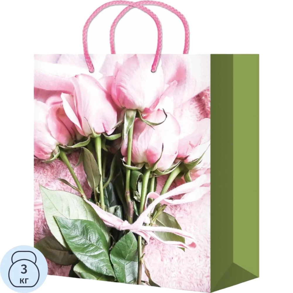 Пакет подарочн. с глянц.ламинацией 22x31x10см Розовые розы,157г ППК-4443