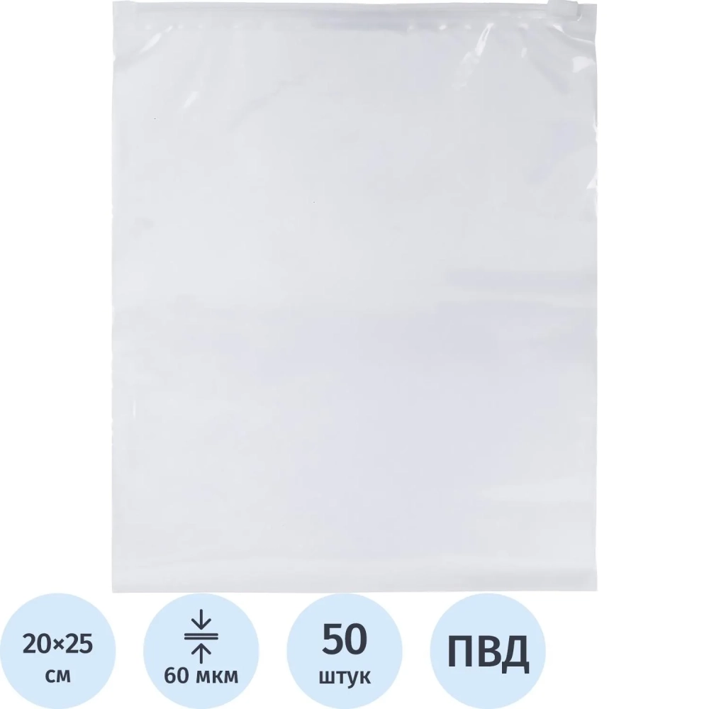 Пакет с замком слайдер EVA прозрачный 60 мкм 20х25, 50 шт/уп
