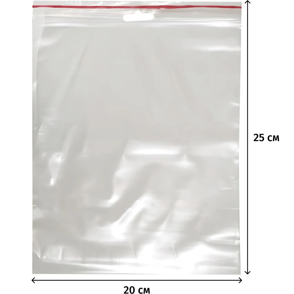 Пакет с замком (Zip Lock) с европодвесом 20 х 25 см, 60 мкм, 100 шт/уп