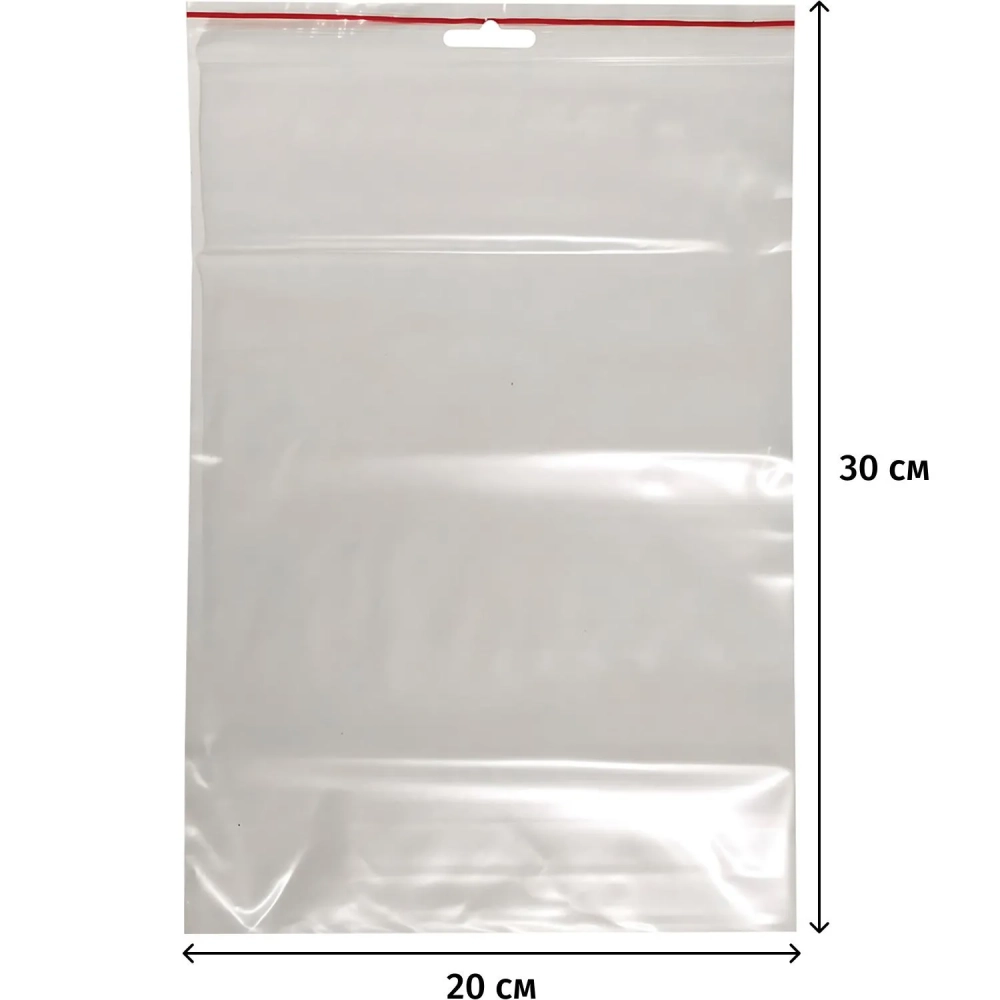 Пакет с замком (Zip Lock) с европодвесом 20 х 30 см, 60 мкм, 100 шт/уп