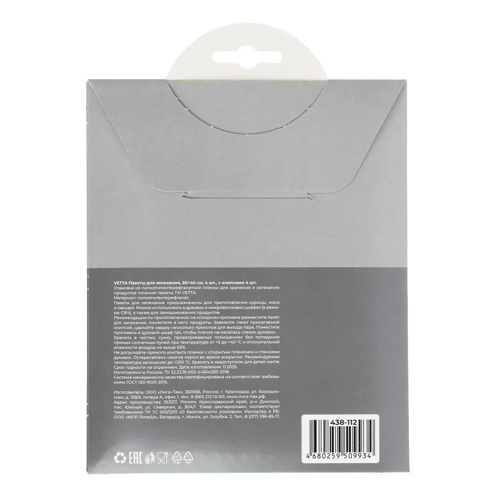 Хотите приготовить особенный обед для родных и друзей? На помощь спешат пакеты для запекания Vetta с клипсами! Главный козырь аксессуаров — способность готовить птицу, мясо и овощи в собственном соку с сохранением всех полезных веществ. Изделия устойчивы к высокой температуре, не взаимодействуют с пищей. Поместите ингредиенты в пакет, закрепите клипсами и отправьте в духовой шкаф. Вкусные и полезные блюда, которые тают во рту и вызывают восторг — гарантированы!