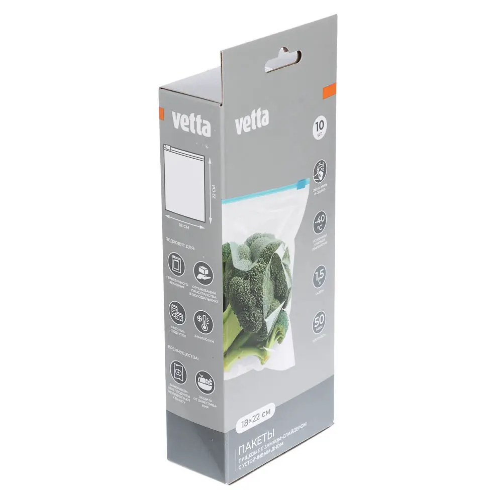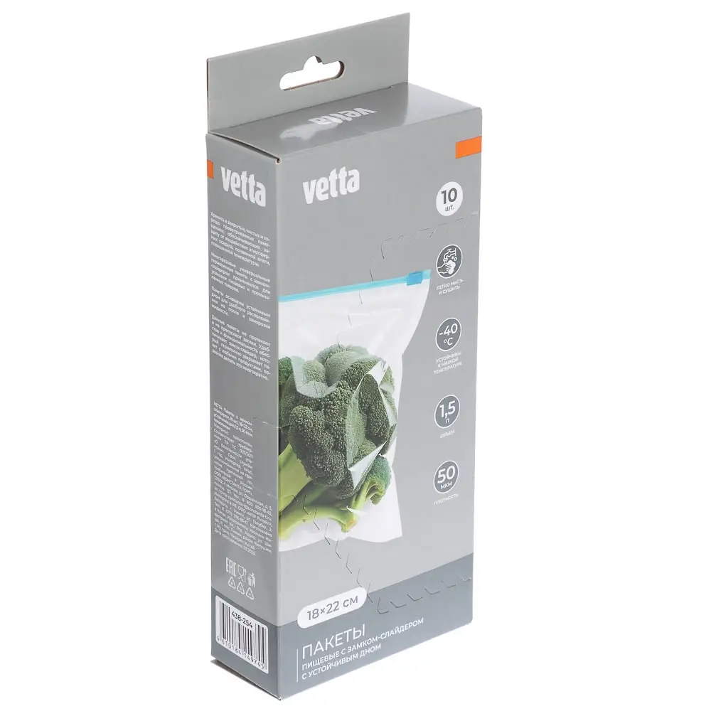 Пакеты с замком-слайдером тм VETTA, 18х22см, устойчивое дно, 1,5л, 50мкм, полиэтилен, 10шт