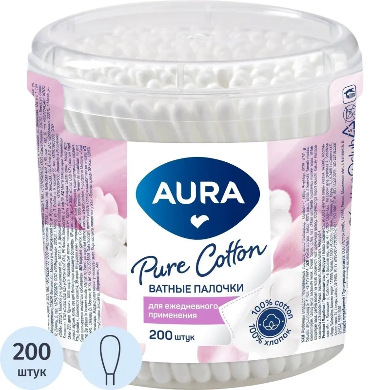Палочки ватные AURA стакан 200 шт./уп..