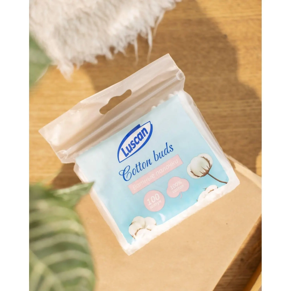 Палочки ватные Luscan zip-пакет 100шт/уп