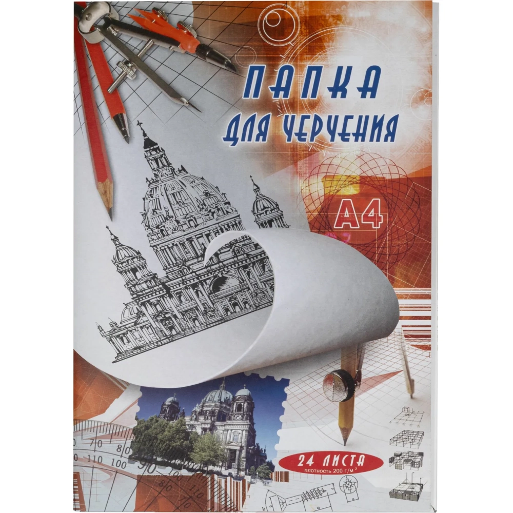 Папка для черчения без рамки А4 24листа ватман 200г/кв.м