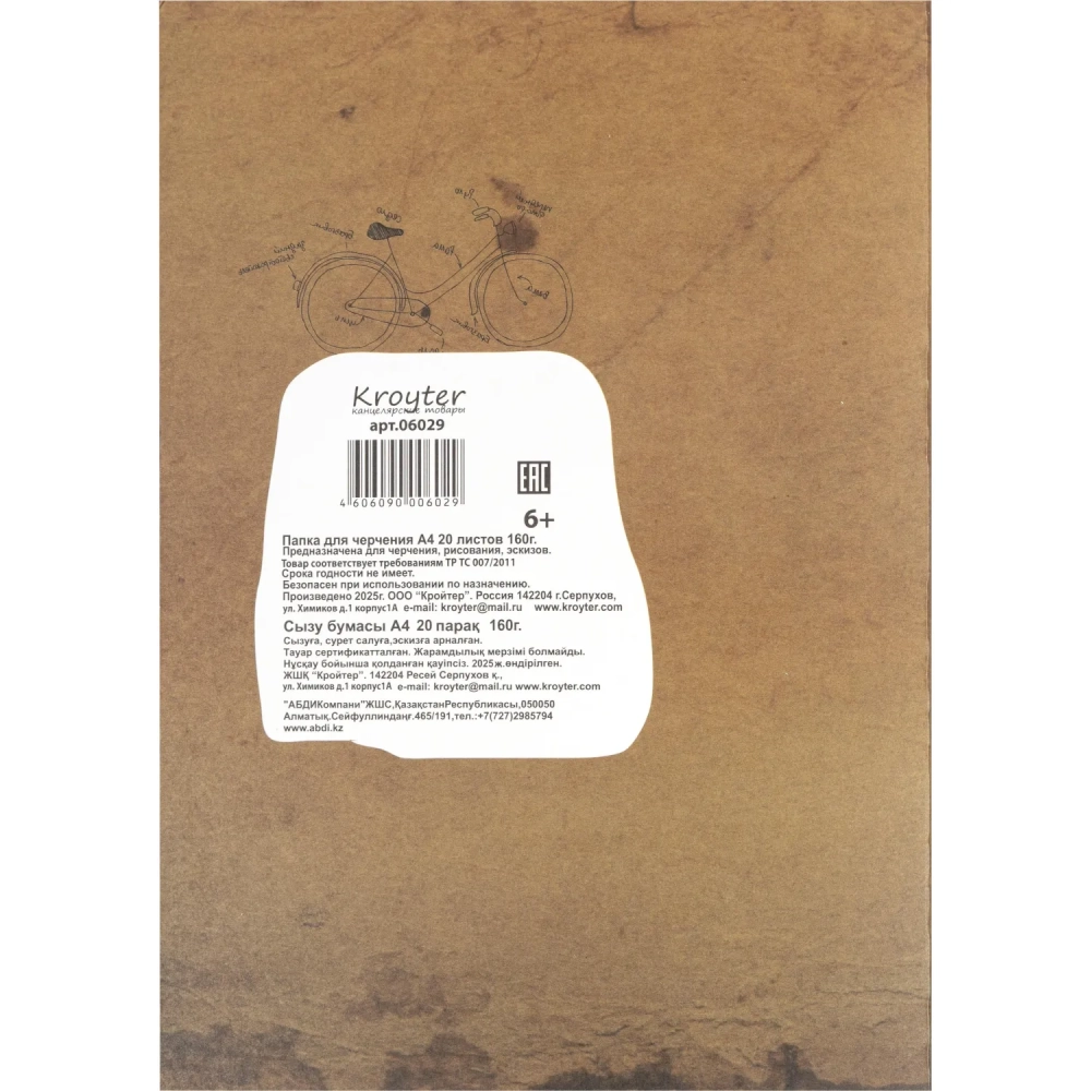 Папка для черчения Kroyter 20л,А4,блок160гр,ГОСЗНАК,обл.тисн.фольгой,Винтаж