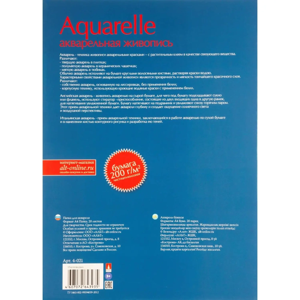 Папка для рисования акварелью А4,20л,блок ГОЗНАК 200гр 4-021 дизайн в ассор